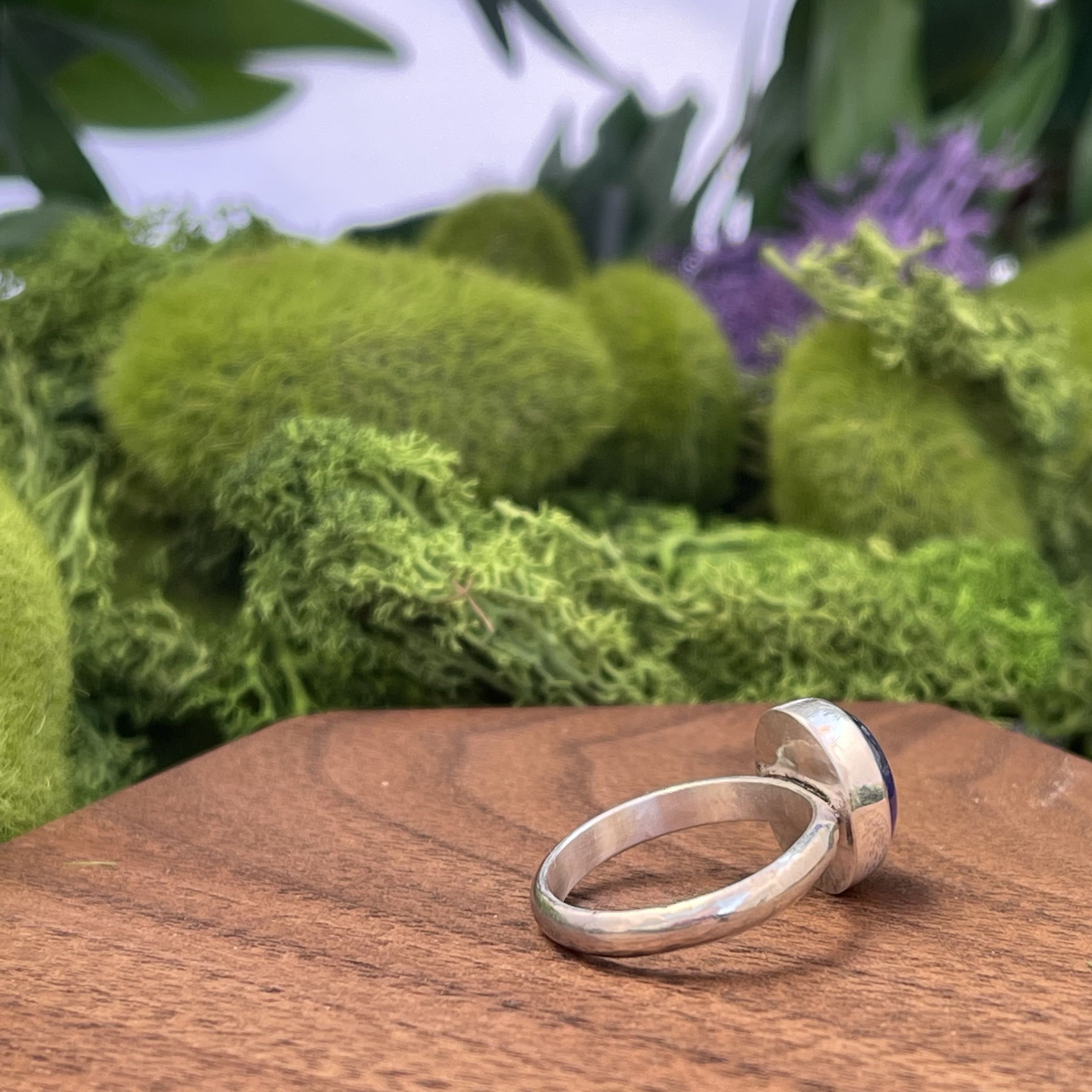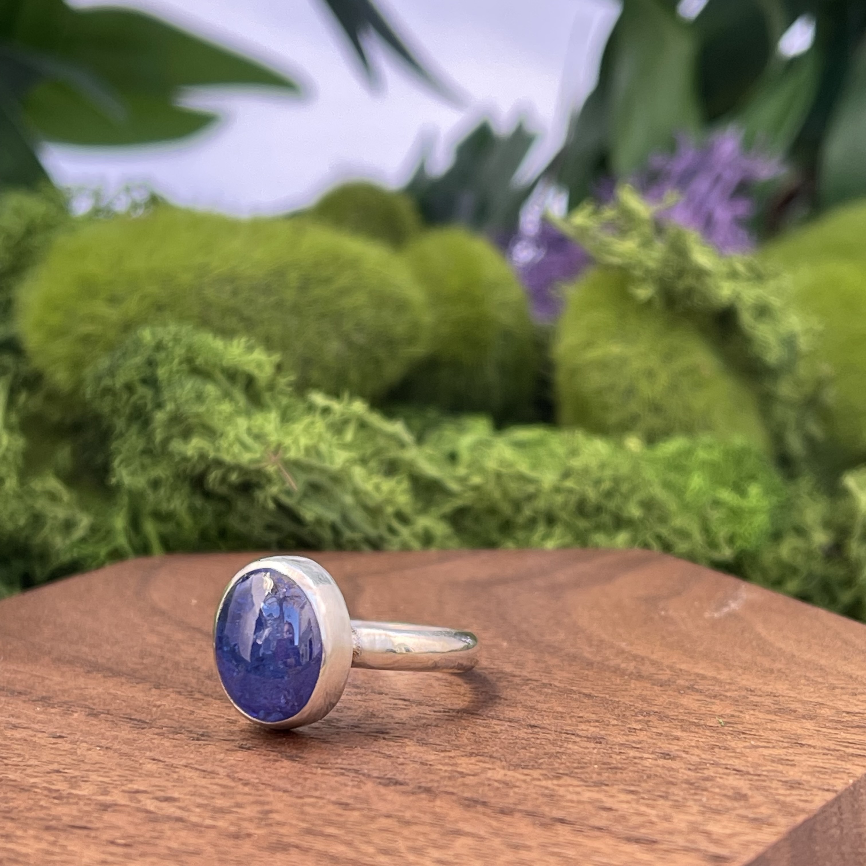 This luminescent tanzanite is set in a simple sterling silver bezel.